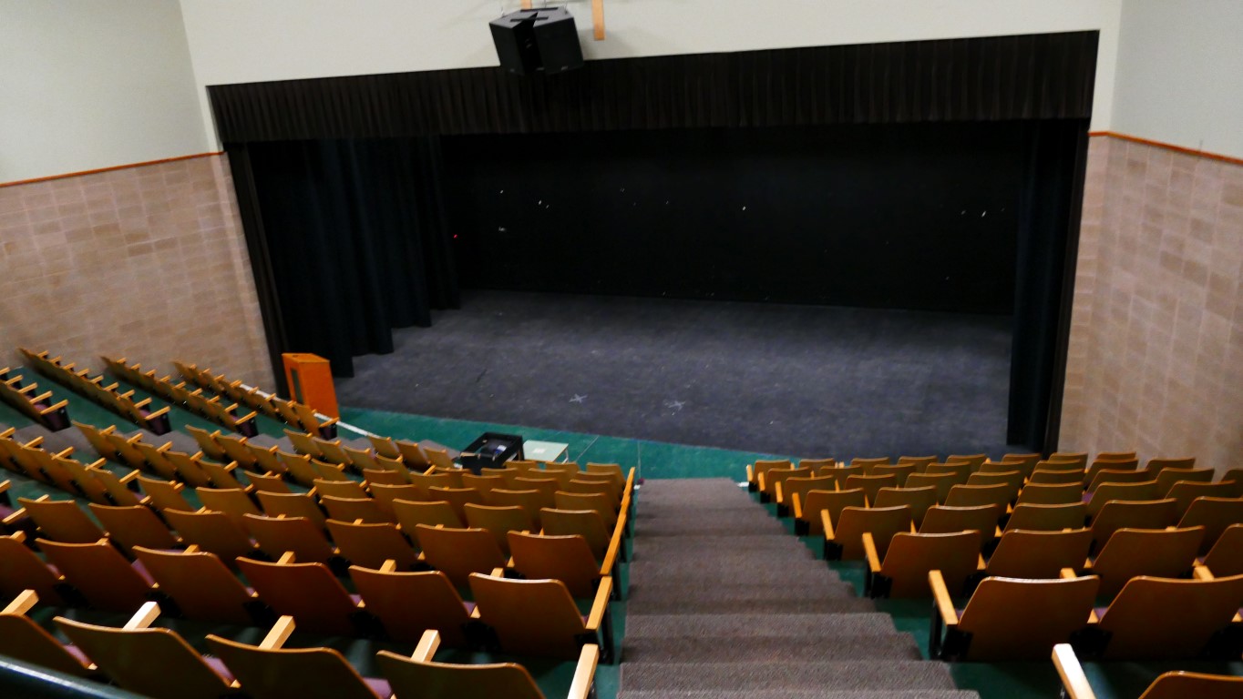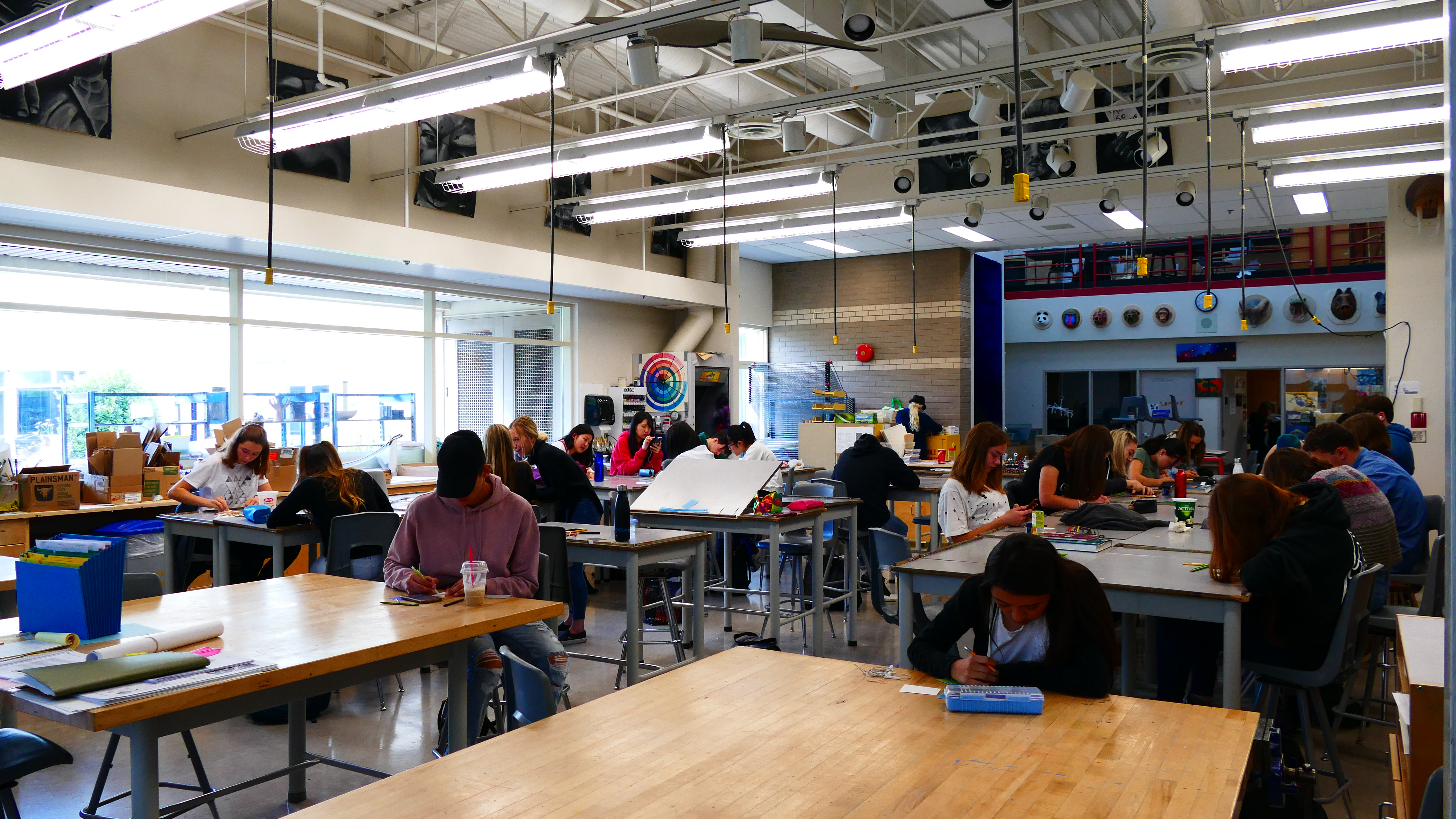 Dann kommen Räume, die mich ziemlich begeistern. Eine professionelle Gastroküche, wo gerade Unterricht läuft, das Theater, ein Fotoraum, Videoproduktion, Holzwerkstatt, Autowerkstatt, Kunstraum und natürlich die Sporthalle – man spürt dort den High School Spirit.