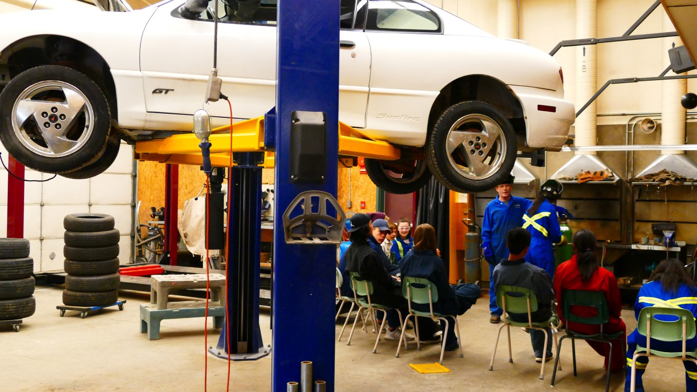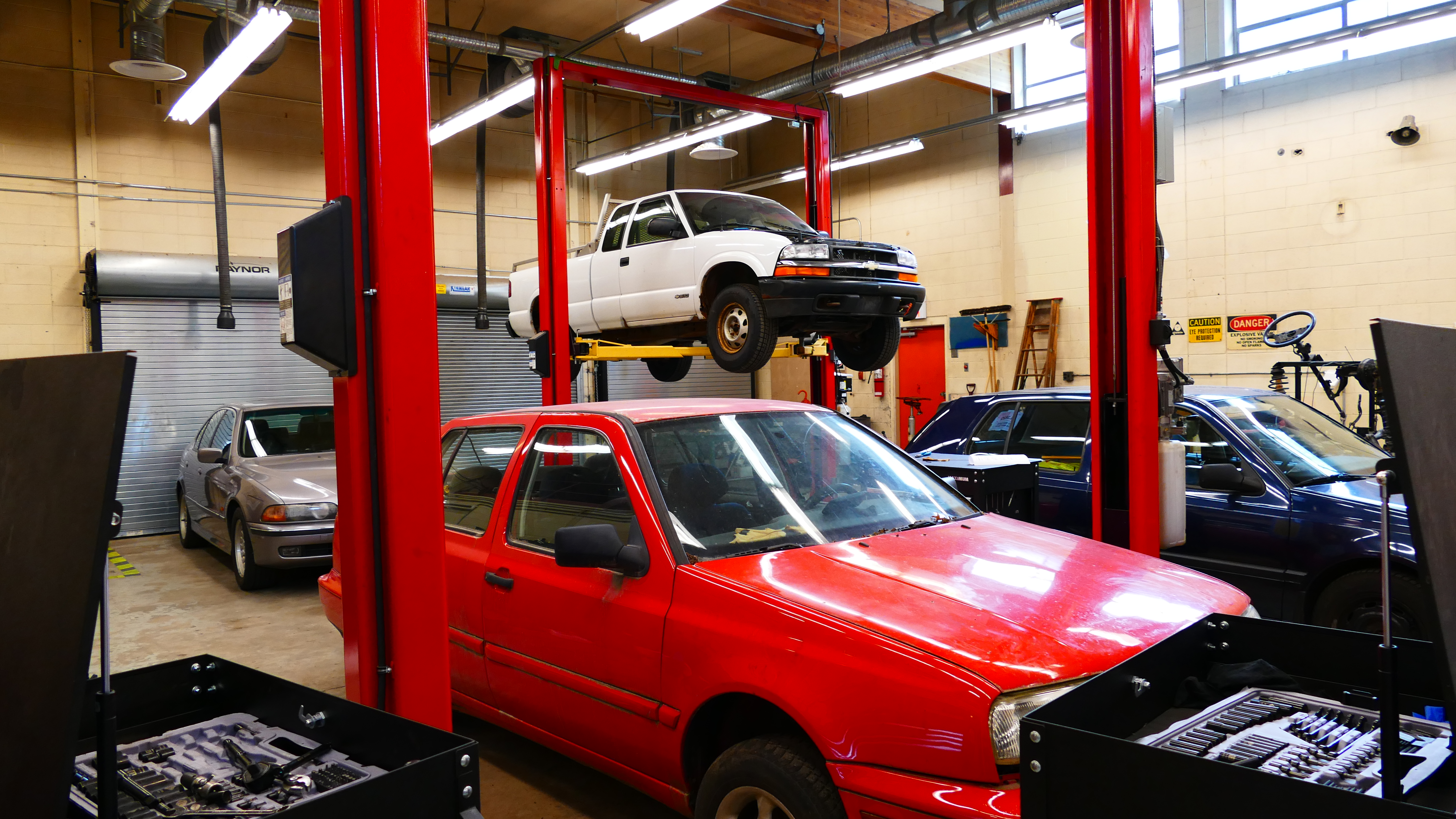 Die Autowerkstatt ist riesig. Hier bringen die Schüler, die schon Auto fahren, einfach ihre Autos mit in den Unterricht, wenn mal etwas zu reparieren ist. Sogar der Schuldirektor hat vor kurzem sein Auto zur Schulwerkstatt gebracht.