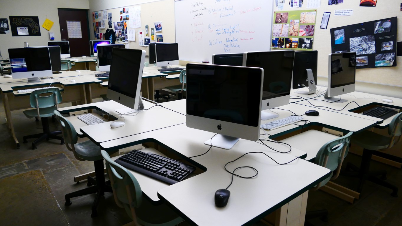 Genau das gleiche erlebe ich auch auf dem akademischen Gang. Mir fällt auf, dass auch hier alle Räume, in denen Unterrichtet wird, offen stehen. Warum das so sei, frage ich Steve. Es sei eine Lehrerentscheidung, wäre aber ganz normal hier. Außerdem fällt mir auf, dass viele Jungs Caps tragen im Unterricht. Seit 5 Jahren ungefähr sei das erlaubt. Es gibt eine Kleiderordnung: keine Trägertops, kein Bauchfrei, keine zu kurzen Hosen, für Mädchen und Jungen. Die Schüler sitzen oft in Gruppen zusammen, die Tische und Stühle stehen nicht in Reih und Glied. In manchen Klassen sitzen die Schüler mit Kopfhörern und hören Musik. Jeder Raum hat ein Whiteboard für den Beamer oder einen großen Bildschirm, auf dem prästentiert wird. Alle Räume sind technisch unglaublich gut ausgestattet. In die Klassen, in die ich reinschaue, kann ich nicht erkennen, wer nun Local und wer Austauschschüler ist. Es sieht aus wie in einer ganz normalen Klasse. Die Klassen sollen möglichst klein gehalten werden, sagt mir Steve. Die Austauschschüler der Schule kommen hauptsächlich aus Japan, China, Deutschland, Brasilien, Spanien und Italien.