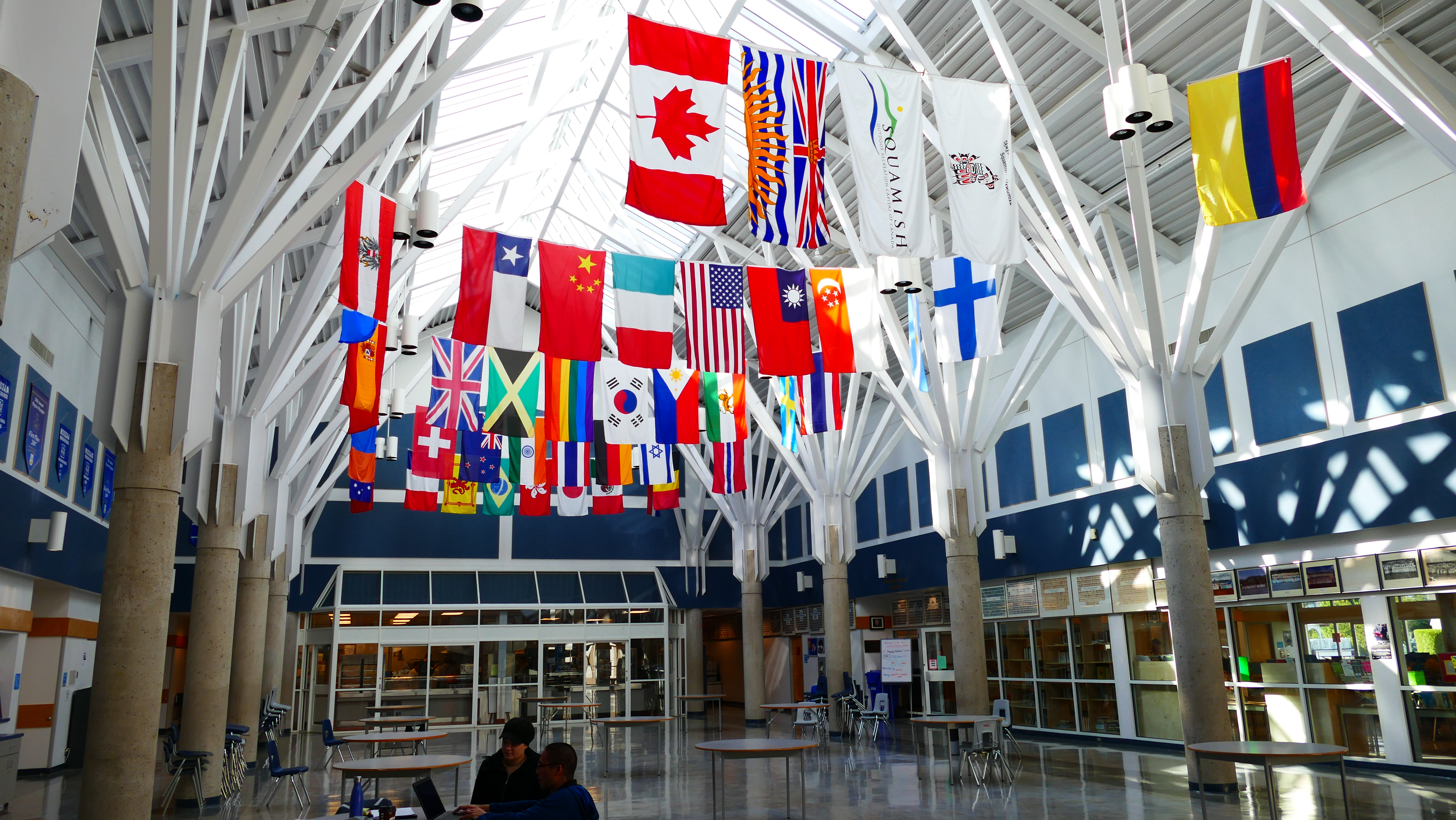 Dort wurde ich unglaublich nett von Janet, Clerical Assistant International Education und Faizel, Sea to Sky District Principal, International Education und dem Koordinator für die Gastfamilien an der Schule empfangen. Die Schule hat etwa 650 Schüler, davon 100 Austauschschüler und die meisten davon – taa taa – kommen aus Deutschland, in diesem Jahr sind es 24. Als ich gegen 10.30 Uhr an der Schule bin, läuft gerade der zweite Block. Hier beginnt die erste Stunde um 8.40. Die Schüler kommen mit dem gelben Schulbus, mit dem öffentlichen Bus oder mit dem Fahrrad – je nachdem wo sie wohnen. Faizel betont, dass Sea to Sky DIE Biking-Region Kanadas ist.