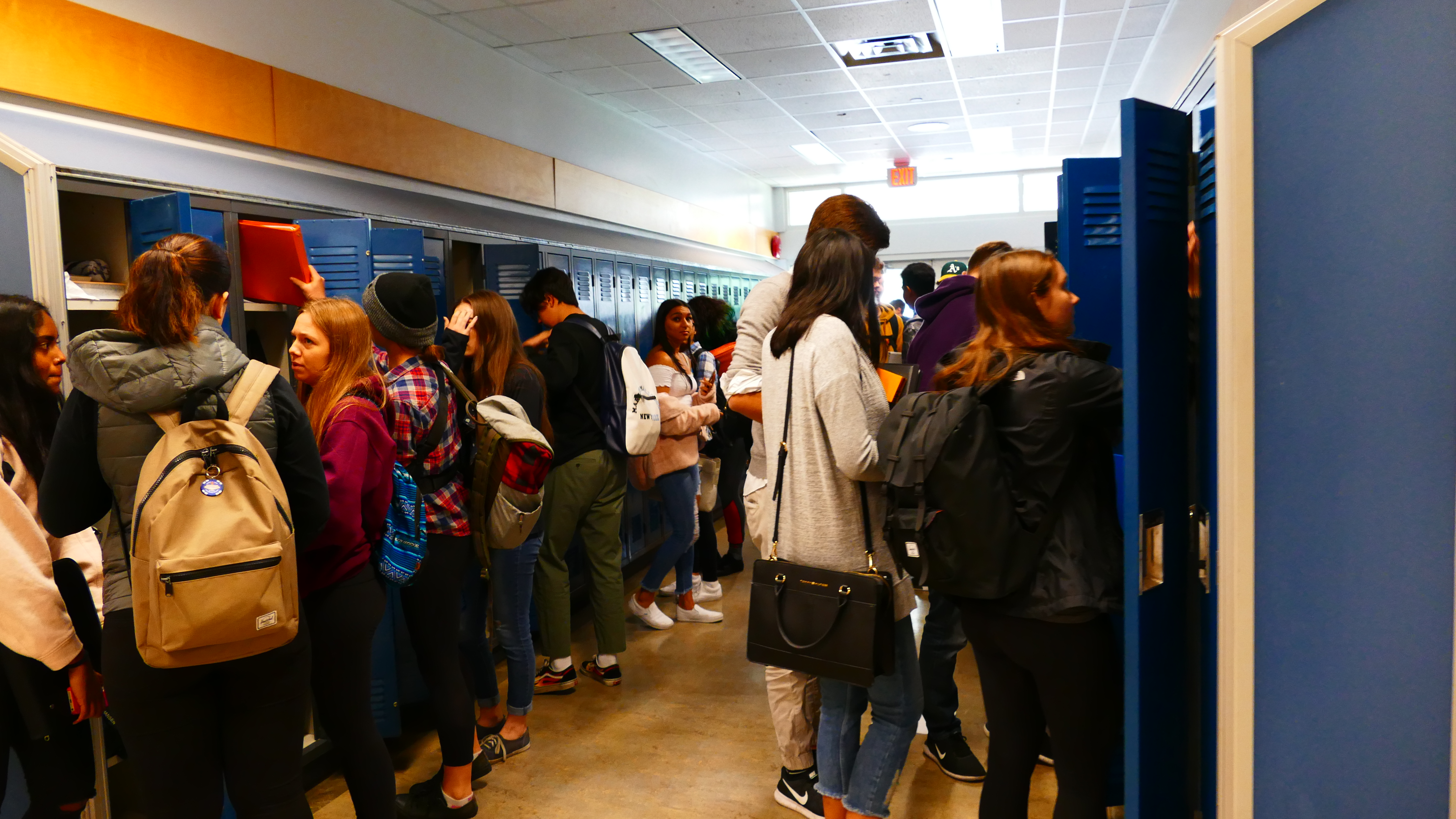 Der Unterricht beginnt hier um 8.30. Es werden jeden Tag 4 Fächer unterrichtet, jeden Tag die Gleichen. Nach dem ersten Halbjahr wird neu gewählt. Die Schüler sollen zwei akademische Fächer und zwei praktische Fächer wählen. Nach dem ersten Fach gibt es 10 Minuten Pause, die Gänge füllen sich. Es gibt ein großes Hin- und Hergelaufe auf den Fluren und viele Schüler sind auf dem Weg zu ihrem Spind. Steve wird immer wieder von Schülern gegrüßt „Hi Steve“. Eine total lockere Atmosphäre zwischen Schülern und Lehrern, so kommt es mir vor.