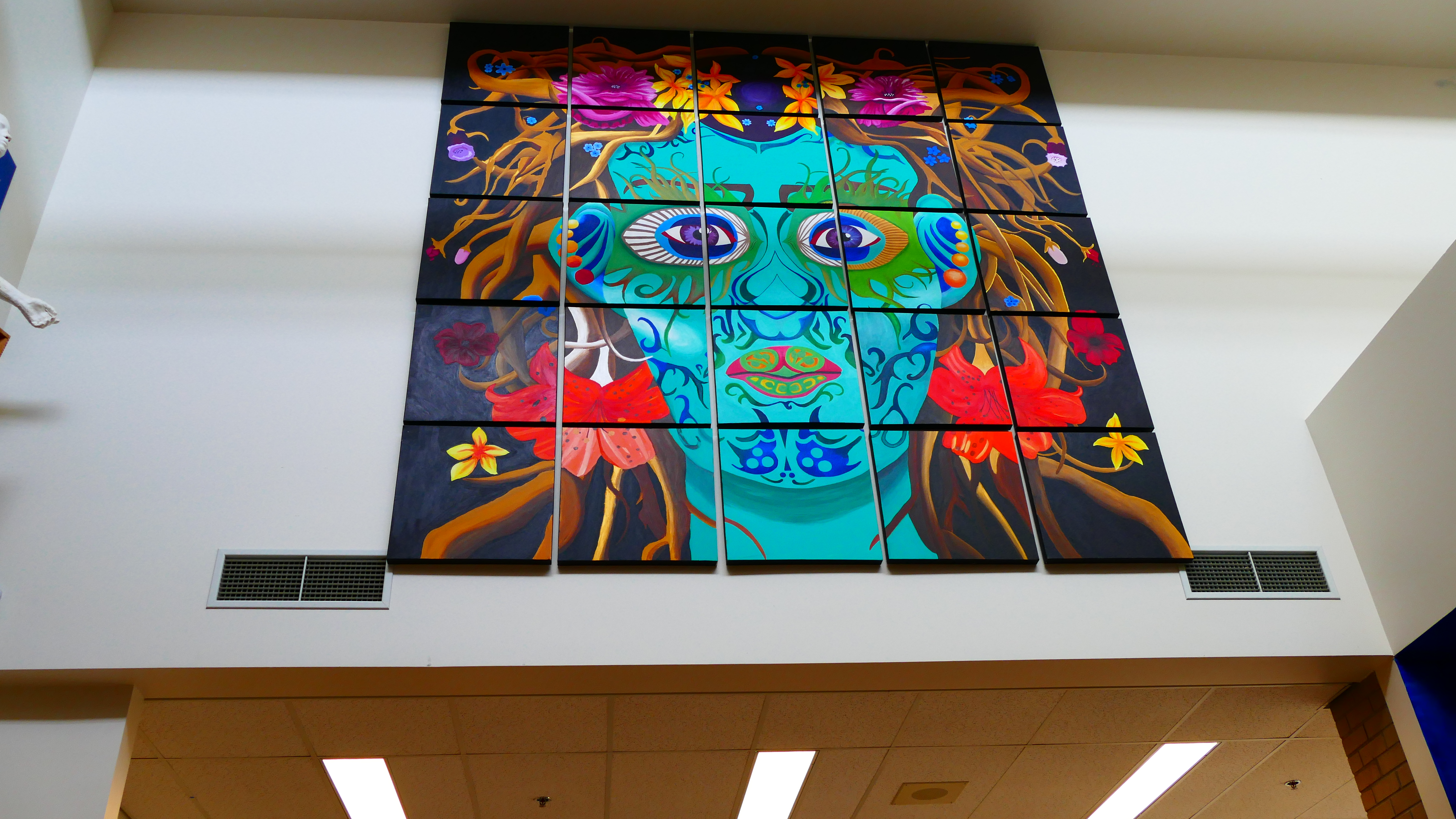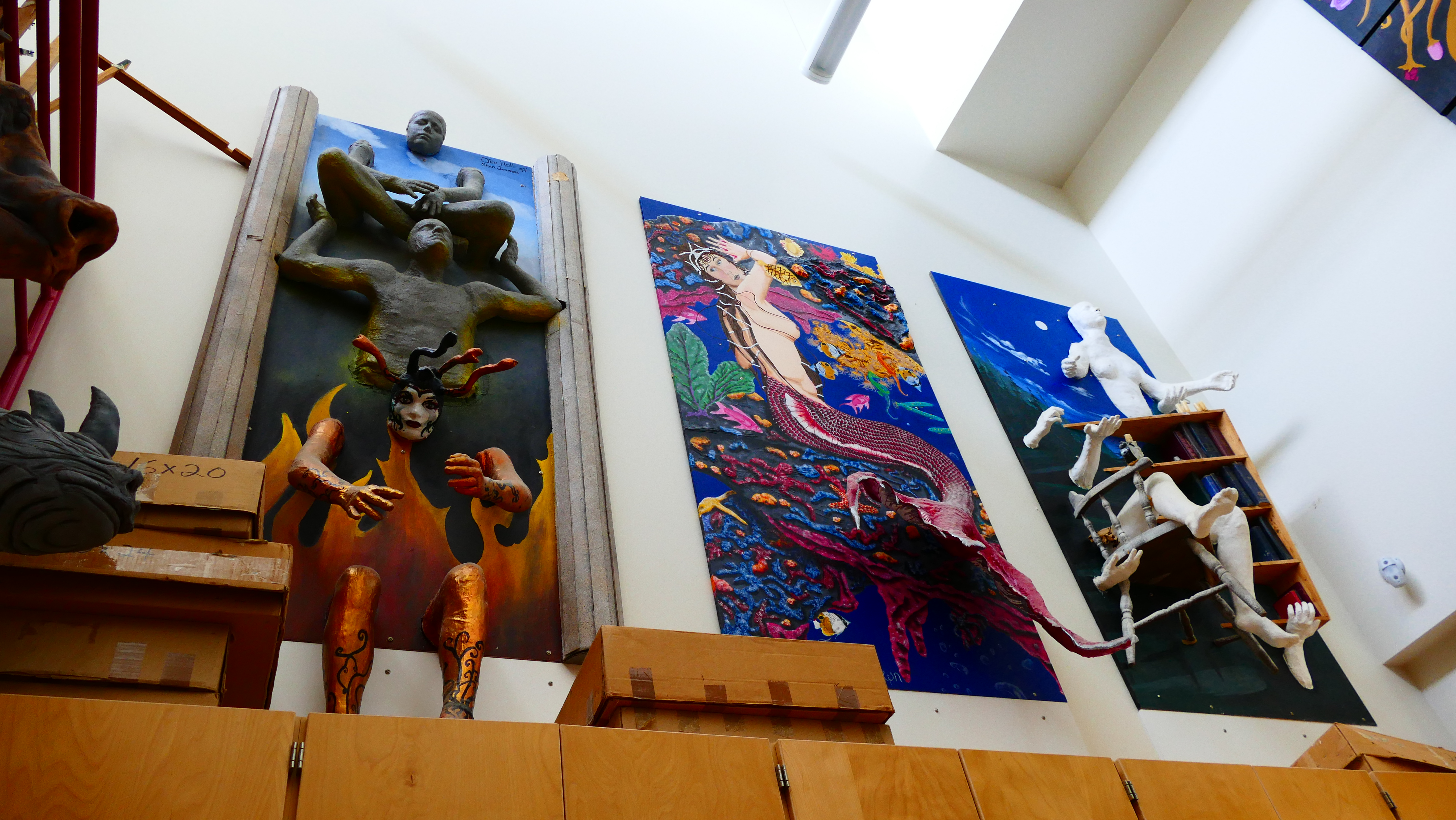 Ich habe außerdem eine sehr nette Kunstlehrerin getroffen. Auch sie hat mir erzählt, dass sie beispielsweise lediglich das Thema Wasserfarben vorgibt, wie der Schüler das dann umsetzt, was er darauf machen möchte, etc. bleibt dem Schüler überlassen. Sie meinte, jeder wäre hier, weil er hier sein möchte – das ist doch die beste Voraussetzung für kreatives Arbeiten. Außerdem verschönern die Kunstklassen regelmäßig das Schulgebäude und sehen so ihren Erfolg.