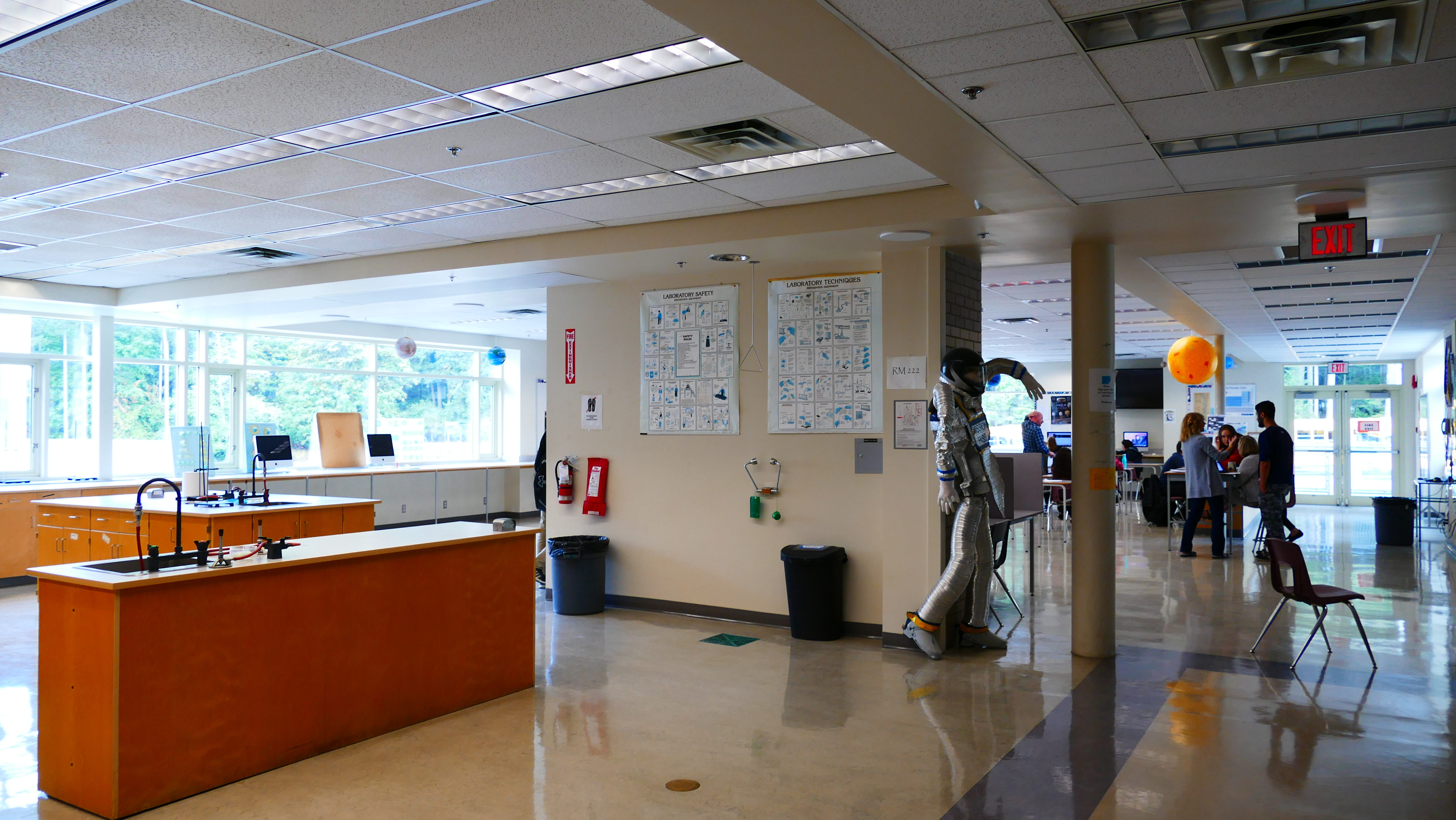 Entlang des Rondells sind die Schulsekretariate und Lehrerzimmer. Auffällig ist: es gibt keine Türen bzw. wenn doch, stehen sie offen. Jeder kann jederzeit vorbeischauen, egal ob Local oder International, egal welche Fragen und Anliegen es sind. Von dem Rondell gehen zwei lange Gänge ab. Ein Gang für die akademischen Fächer, ein Gang für alle praktischen Fächer. Man könne sich gar nicht verlaufen, meint Steve. Als erstes zeigt er mir die Räume, in denen alle praktischen Fächer angeboten werden. Hands-on learning ist hier allgegenwärtig. Und ich bin erstaunt. Man hört laut Musik aus dem ersten Raum. Es ist ein Fitnessraum, der ziemlich gut ausgestattet ist. Die Schüler trainieren.